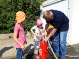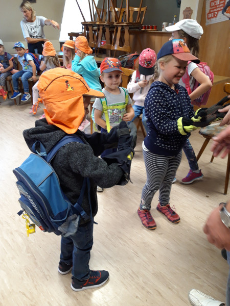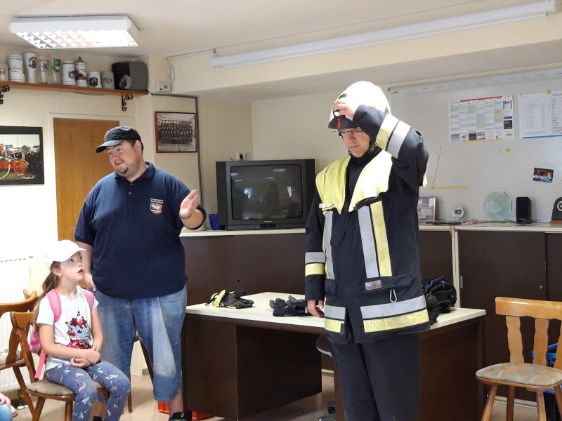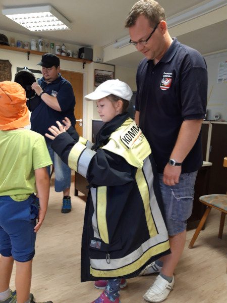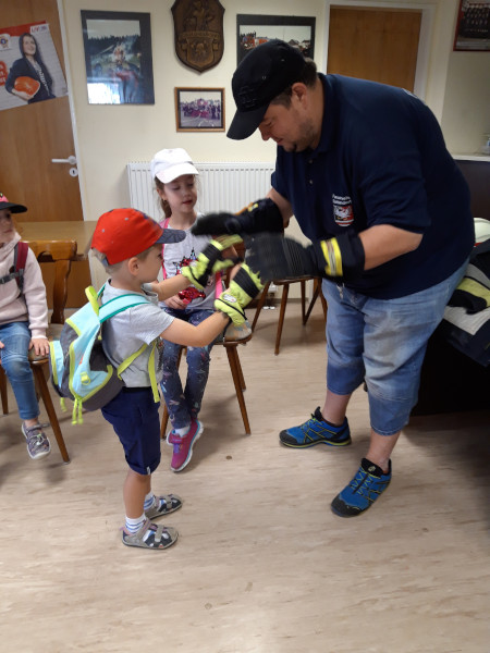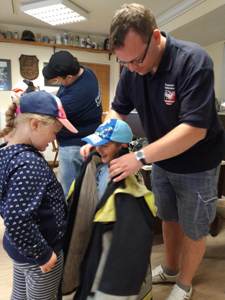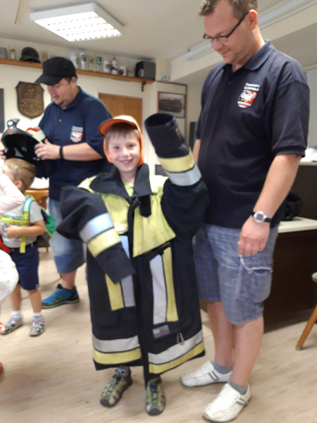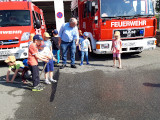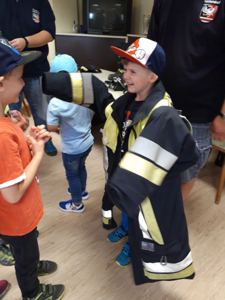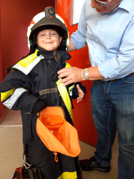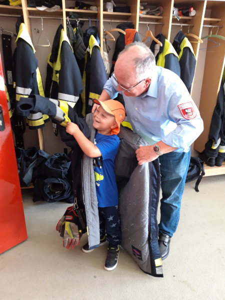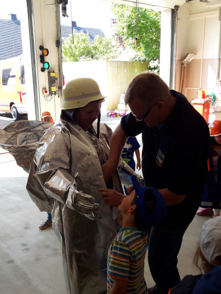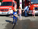 Daneben hatten die Kleinen natürlich auch die Möglichkeit vieles selber anzufassen, auszuprobieren und in so manche Einsatzklamotten schlüpfen. Die kurze Fahrt im Feuerwehrauto durfte natürlich auch nicht fehlen. Für Kinder und Feuerwehrler war es ein toller, spaßiger Vormittag.