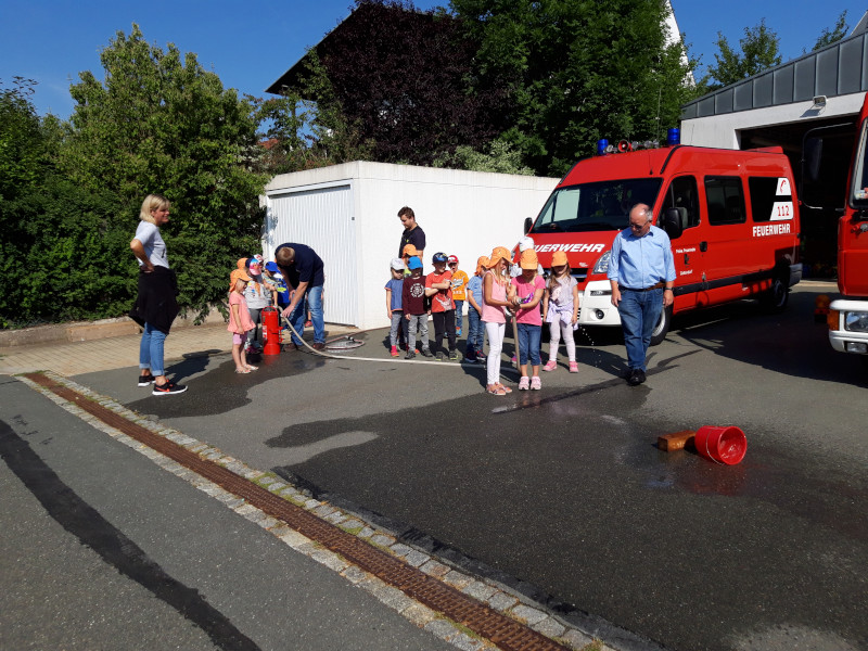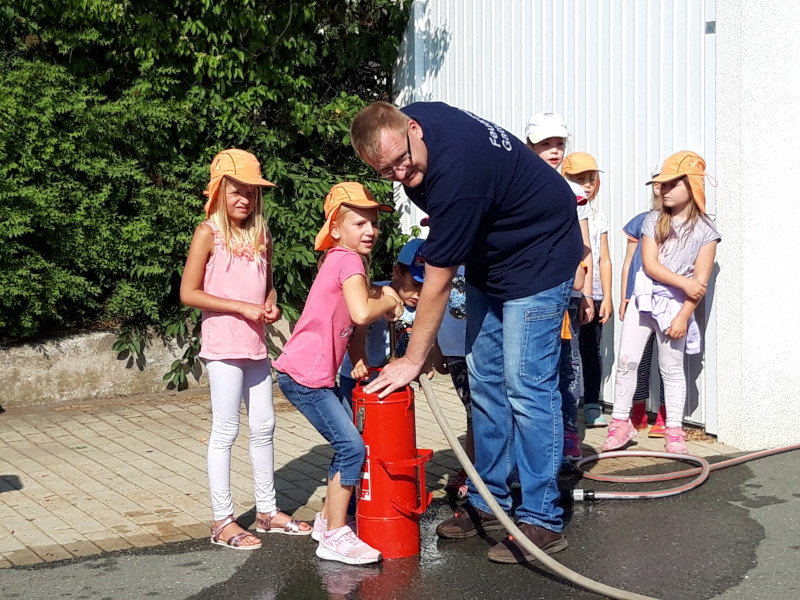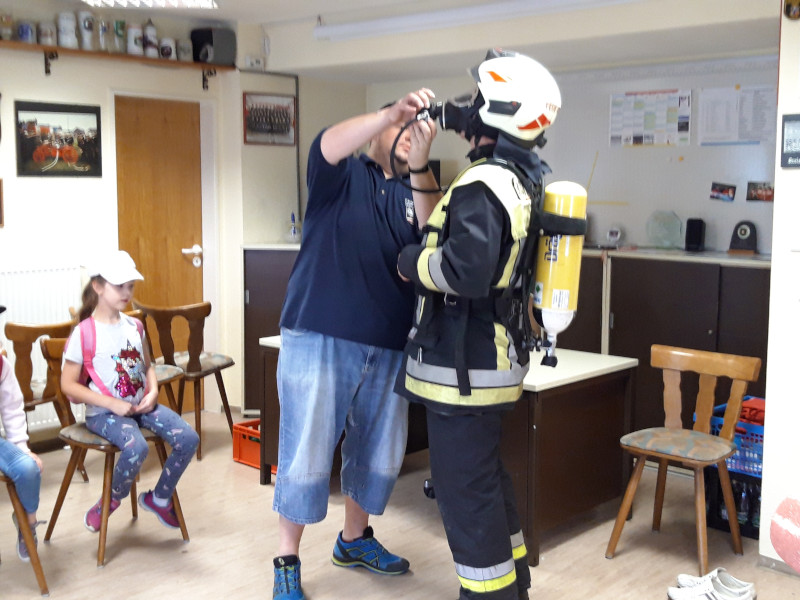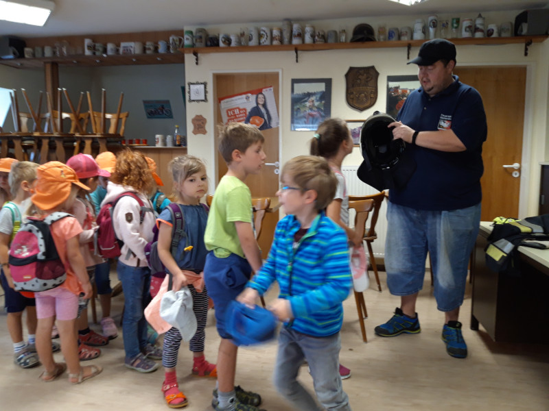 Die Kinder der Gattendorfer KITA haben uns in unserem Gerätehaus besucht und durften einen Blick hinter die Kulissen ihrer Feuerwehr werfen. So konnten die Kids zum Beispiel erleben wie sich einer unserer Kameraden Schritt für Schritt in einen Feuerwehrmann mit Atemschutzgerät verwandelt. Dabei lernten sie, dass man auch im Ernstfall keine Angst vor Feuerwehrleuten haben muss. Und unter welcher Nummer man bei einem Brand die Feuerwehr zu rufen hat konnten uns alle schon im Chor zurufen.