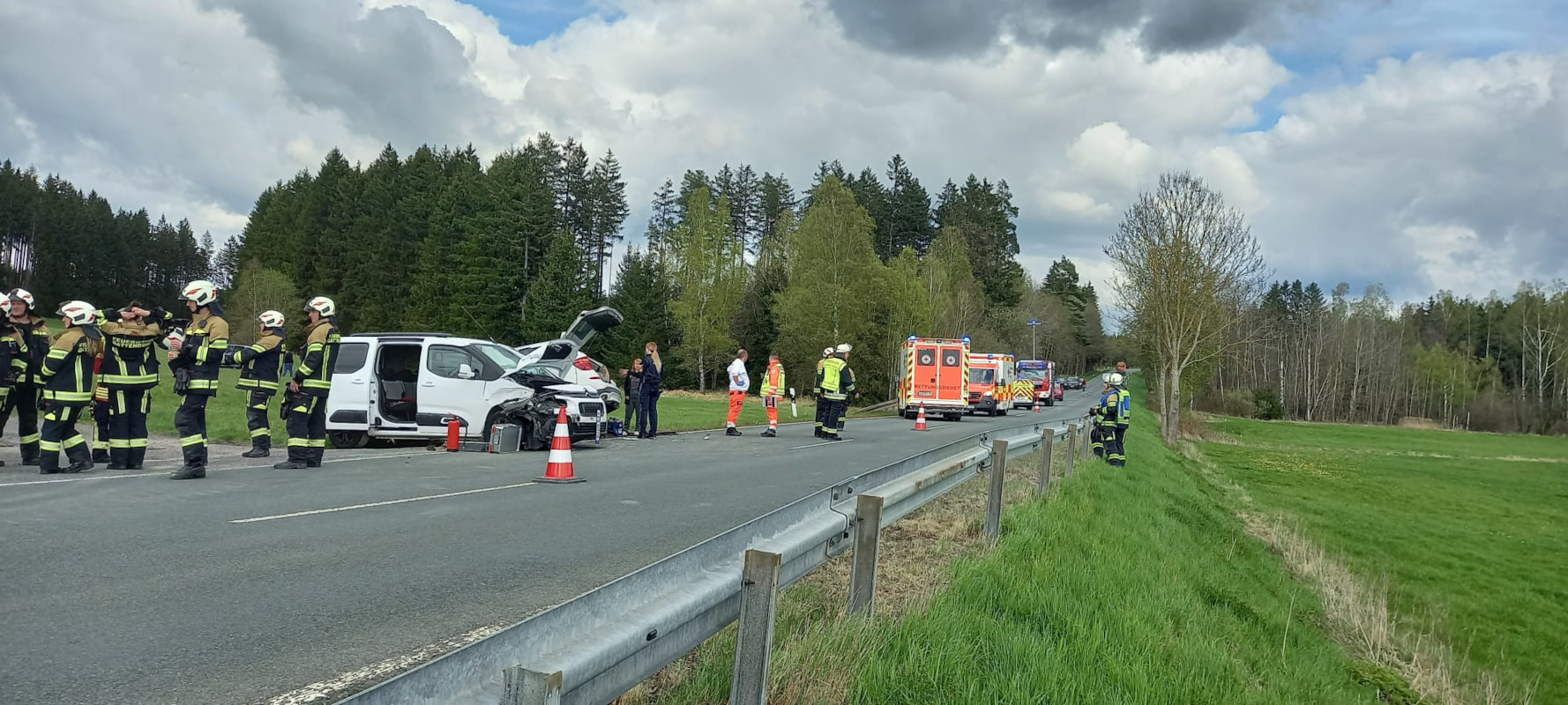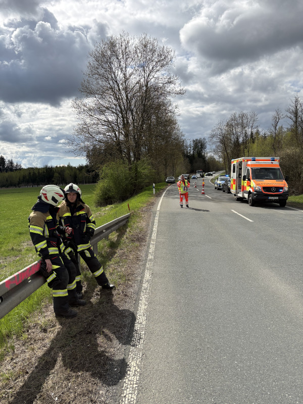 Verkehrsunfall mit mehreren Fahrzeugen auf der St2192 zwischen Gattendorf und Jägersruh. Beim Eintreffen an der Unfallstelle hatten alle Insassen ihre Fahrzeuge bereits selbstständig verlassen. Die Feuerwehr übernahm die Absicherung der Unfallstelle. Zeitweise musste die Straße vollständig gesperrt werden. Parallel dazu wurde Unterstützung für den Rettungsdienst geleistet, auslaufende Betriebsmittel an den Unfallfahrzeugen abgebunden und der Brandschutz sichergestellt. Anschließend wurde die Fahrbahn gereinigt und die Straße wieder für den Verkehr freigegeben.